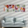 Wiosenne obrazy „Favours” są pełne ciepłych fioletów, pomarańczy i różu połączonych z chłodną pistacjową zielenią. Kolejne warstwy przeplatają się ze sobą tworząc wielowymiarowe dzieło sztuki. Wszystkie cztery obrazy zostały namalowane z jednej sesji i złożone razem tworzą jeden duży obraz. Świetnie prezentują się w zestawie lub pojedynczo.